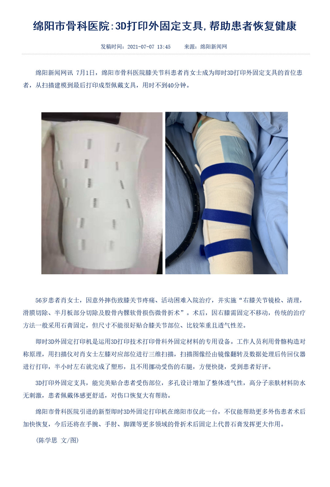 綿陽市骨科醫(yī)院:3D打印外固定支具,幫助患者恢復(fù)健康